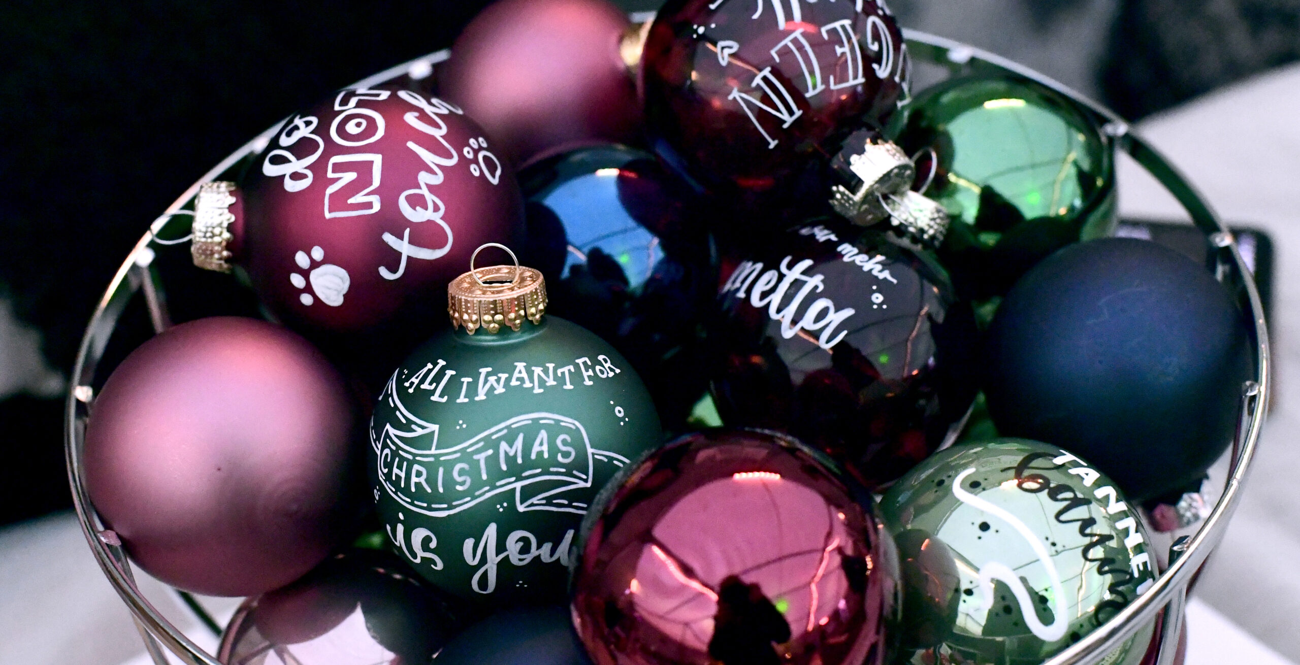 → Frühstücksbrettchen und glänzende Christbaumkugeln